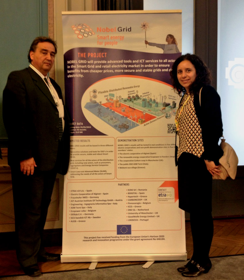 NOBEL GRID participated in events on several days during, prior and after the officially hosted EUSEW (13-17 June), in Brussels, Madrid and Berlin. “Thanks to EUSEW we could share with Europe’s energy stakeholders the NOBEL GRID project innovations which will lead to a more sustainable and efficient energy market while at the same time we have been able to learn about new initiatives and create synergies and alliances “, expressed Lola Alacreu Project Manager of NOBEL GRID. EUSEW 2016, an initiative of the European Commission, an annual event that promotes decentralised events during a month around the official centralised events organised during one week by the Commission itself. It is an opportunity to promoting secure, clean and efficient energy markets, and connect policymakers, stakeholders and citizens to achieve climate and energy goals for the Energy Union. This year the EUSEW thematic focus was on consumers as key actors towards the energy transition and the Energy Union in Europe; policies that will ensure that Europe has secure, affordable and climate-friendly energy.