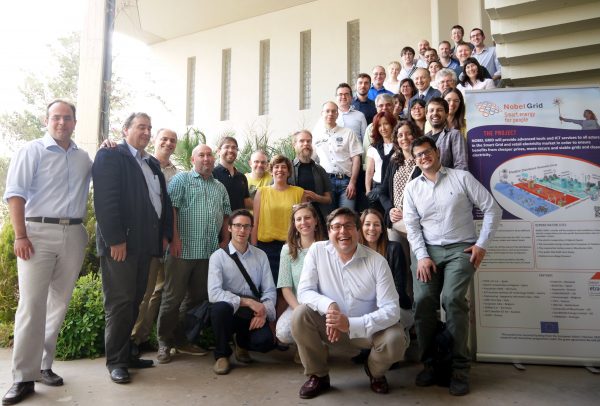 The 3rd General Meeting of the NOBEL GRID Project took place 10-12 May in Athens where the 21 partners of the consortium tracked the progress, one and half year from the project start date, during their visit to the Greek demonstration site. The Institute of Communications and Computer Systems (ICCS), partner of NOBEL GRID, hosted this meeting and guided the rest of the consortium through the pilot site of Meltemi eco-village, one of the five demonstration sites of the project. Meltemi eco-village is a seaside holiday camp located in Rafina that comprises of 220 households with an autonomous communal electrical infrastructure – all houses are connected to the same MV/LV transformer, making it ideal for use as a test bed for functions related to emergency and critical grid situations. “Mainly we are going to install 5 battery inverters, test the Smart Meter Extension Module and the Smart Low-cost Advanced Meter, that will be developed within this project. Furthermore, Meltemi is going to demonstrate some new tools that will support the distribution site” explained Aris Dimeas, researcher at the ICCS. During the 3-days conference, partners have discussed, exchanged knowledge and faced some future challenges like smart home environment, models for distribution and storage integration, stable, and user-engagement strategies together with secure distribution grid innovative technologies. “Through this general meeting all partners can have the general picture of the project and we can see how others promote our functionalities” explained Dr. Huillian Liao, researcher of the University of Manchester. The multidisciplinary nature of this project enhances cooperation from all partners resulting in solving different market needs while reinforcing their commitment to make the smart grid project a reality.