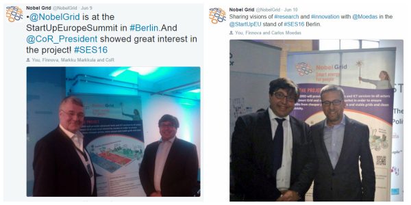 Furthermore, European institutional representatives showed great interest in NOBEL GRID’s goals at the Startup Europe Summit 2016 in Berlin 9-10 June, such as Commissioner for Research, Science and Innovation, Carlos Moedas, and President of the Committee of the Regions, Markku Markkula. In Madrid the project was presented to the Energy and Environment International Trade Fair of Madrid (GENERA) and met the main scientific and technological advances in the field of renewable energy and energy efficiency. And in the final event of the month long EUSEW events, the 5th Annual Conference InnoGrid2020+ (27-28 June, Brussels), where knowledge, views and best practices were shared with other experts within the smart grids and the digital market fields, where NOBEL GRID was exhibited. Thanks to EUSEW 2016, the project innovations could be shared with European energy stakeholders and NOBEL GRID partners could find out other inspiring initiatives as well as create synergies and alliances.